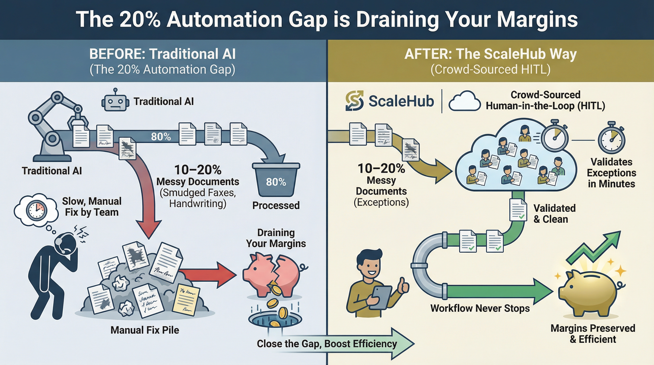 - ScaleHub HITL extracts & validates data against contracts & business rules